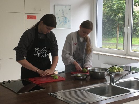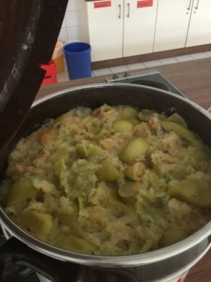 Viele liebe Spender/innen haben uns Gartenäpfel gebracht, die die Schüler/innen der 9. und 10. Realschulklassen zu Apfelsaft und schließlich zu Apfelgelee verarbeiten. Falls uns das gelingt, gibt es bei der nächsten Gelegenheit an der SAAF Apfelgelee zu kaufen.