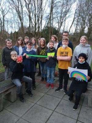 Der 10.02.2022 ist seit 2016 Kinderhospiztag. Die SchülerInnen der Schule Altes Amt zeigen sich an diesem Tag ganz besonders solidarisch mit den Kindern und Jugendlichen. Ein Weckglas mit einem Banner soll auf die wichtigen Aufgaben der Hospizarbeit aufmerksam machen.